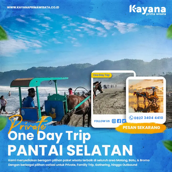 Paket Wisata Pantai Malang Selatan – Bosan dengan aktifitas sehari–hari dan ingin liburan yang menyenangkan? Kini kami telah menyediakan Paket Wisata Pantai Malang khusus bagi anda yang ingin mencari suasan liburan yang baru dan menyenangkan. Kami akan mengajak anda melakukan aktivitas di pantai Malang Selatan ini adalah Pantai Laut Selatan yang terkenal dengan keindahannya. Mayoritas Pantai di Malang Selatan adalah pantai yang masih alami & bersih. Bahkan, pantai di malang selatan ini layak disandingkan dengan pantai-pantai yang ada di bali. Kami Kayana Prima Wisata Malang sebagai agen tour dan travel terbaik di malang siap menemani anda berlibur ke berbagai destinasi di Kota Malang yang sangat terkenal.